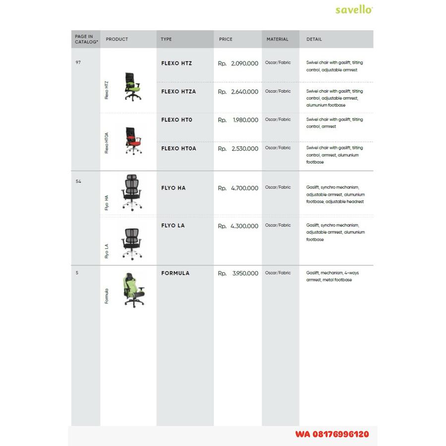 Kursi Kantor Savello FLEXO HTZ HTZA HTO HTOA, FLYO HA LA, FORMULA